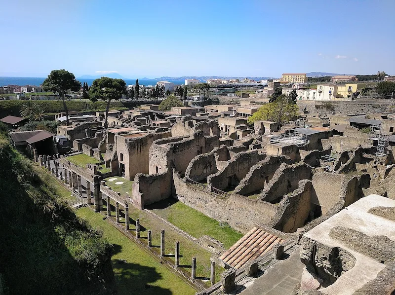 Herculaneum war nie besonders groß. Man schätzt, dass die Stadt um die 4.000 Einwohner*innen hatte. Sie lag direkt an der Küste, und wer schon mal am Golf von Neapel war, kann bestätigen: Das ist eine ziemlich malerische Gegend.